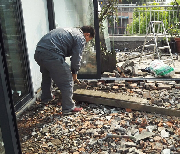 舊房改造項目內(nèi)容:1:樓上門朵砌磚摸灰和陽光房排氣管按彎頭打膠密封和花園接水管(人工和材料)2:花園陽光房地面回填后砂漿找平(人工和輔材)3:陽光房貼地磚和女兒墻磚和報排氣管和兩處貼門坎(人工和輔材)4:陽光房頂安裝4塊玻璃和打膠(人工和輔材)5:樓上房間推拉門上用石膏板封墻(人工和材料)6:所有新安裝的窗戶和陽臺內(nèi)打耐候膠密封(人工和材料)7:幾處墻面局部修補后打沙上漆(人工和材料)8:客廳陽臺處雅口拆除后重新包木套(人工和材料)9:客廳陽臺窗戶做保護欄桿5.9米長(用鍍鋅方管焊好噴氟碳漆
