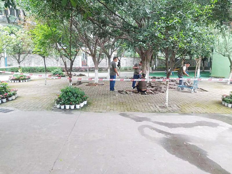 還有可能是校區(qū)樹木較多,植物根系發(fā)達,導致地磚起鼓松動。