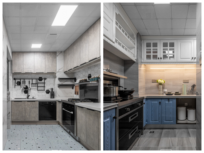 3、弄清圖紙,吊柜、地柜的尺寸(高度、深度)變化,各功能配件應(yīng)安裝入哪號柜體、異形柜的切角等。