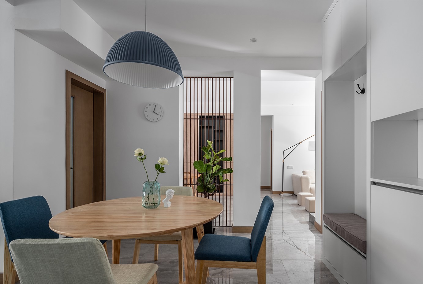 餐廳變化也比較大,打掉了原本影響采光的隔墻,改成了隔斷,再搭配上原木色的餐桌椅,在這樣的餐廳進(jìn)食想必也是一種享受吧!