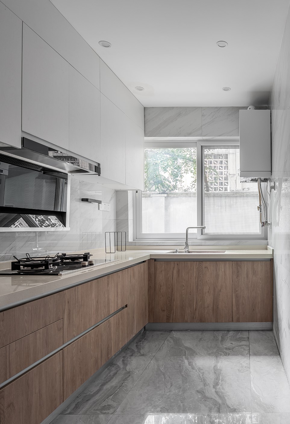 廚房原木色的廚房,搭配灰色的地磚,看起來既簡單又自然,L型的操作太布局,即使是幾個(gè)人一起準(zhǔn)備飯菜,都不會(huì)覺得擁擠,廚房也是業(yè)主此次翻新裝修滿意的地方。