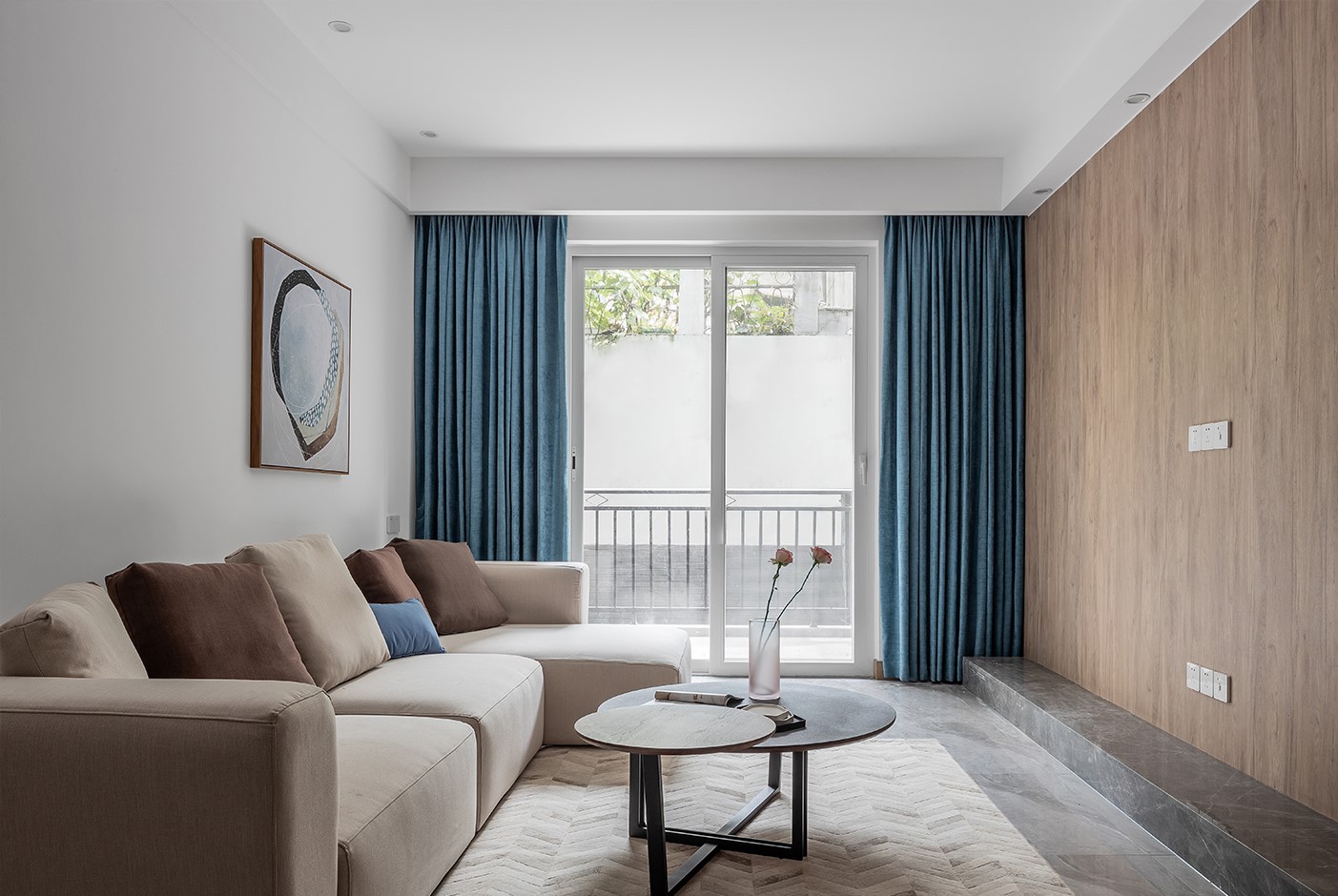 這是客廳翻新后的樣子,簡單不多余的硬裝,把整個(gè)家舊的裝修全部拆除,變成毛坯狀態(tài),乳膠漆墻面加上灰色地板磚,看起來簡潔大方,再配上軟裝家具是不是很難想象它原本是一個(gè)舊房子。