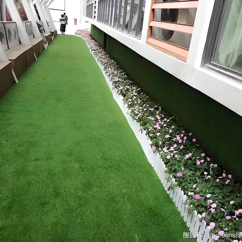 接縫處重疊3cm,用美工刀一次性切透兩層草坪,確保切口整齊。在重疊區(qū)域下方鋪設(shè)專用連接帶,均勻涂抹膠水(厚度0.8-1mm),將草坪對齊壓緊。用壓輥來回滾壓3次,使膠水充分滲透,固化期(通常24小時)禁止踩踏。某商業(yè)廣場項目采用“雙面涂膠+熱熔焊接”工藝,接縫強度提升60%,使用3年未出現(xiàn)開膠現(xiàn)象。