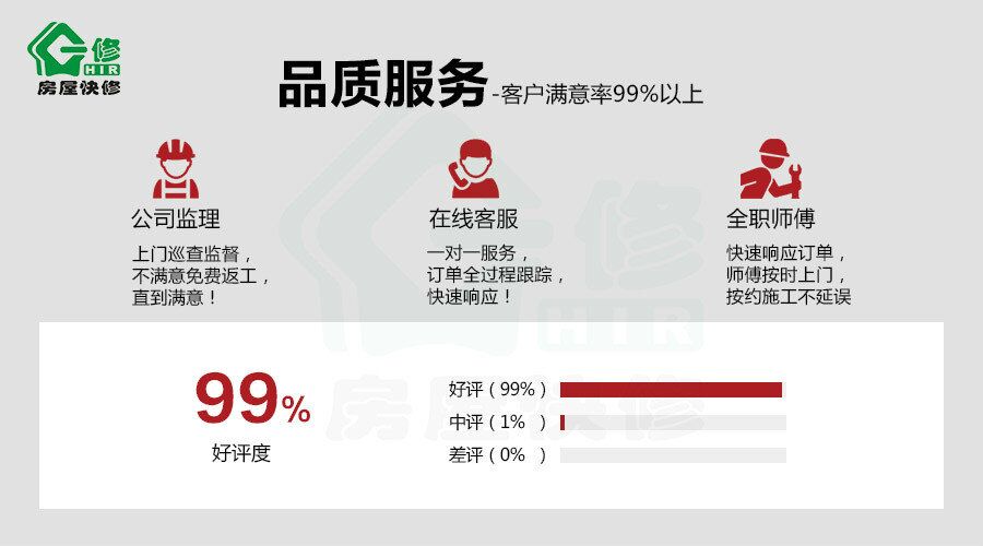 同時(shí),一修房屋翻新在每個(gè)城市都有公司直營(yíng)實(shí)體店,且施工師傅都是自有全職技師,可放心預(yù)約,預(yù)約下單后,快30分鐘上門看現(xiàn)場(chǎng),簽約后施工,線上專屬客服一對(duì)一服務(wù),訂單全過(guò)程跟蹤,有問(wèn)題可隨時(shí)反饋,客服快速響應(yīng)。公司直屬監(jiān)理全程監(jiān)管,工程建群,施工情況隨時(shí)播報(bào)溝通。