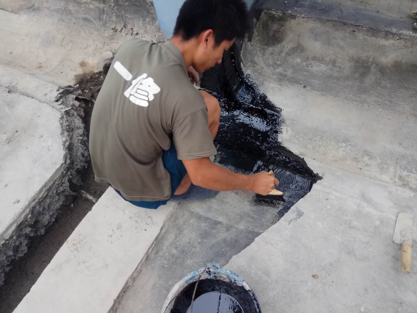 同時(shí)屋頂防水補(bǔ)漏在涂刷防水涂料時(shí)一定要注意節(jié)點(diǎn)加強(qiáng)處理及女兒墻附加層處理,要做到不漏涂、不露底。節(jié)點(diǎn)部位(如水落口、穿板管道、陰陽角等)采用橡膠瀝青涂料加網(wǎng)格布進(jìn)行加強(qiáng)處理。
